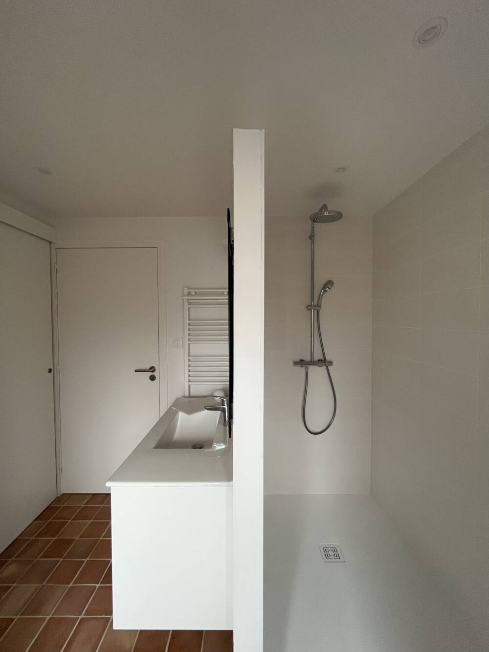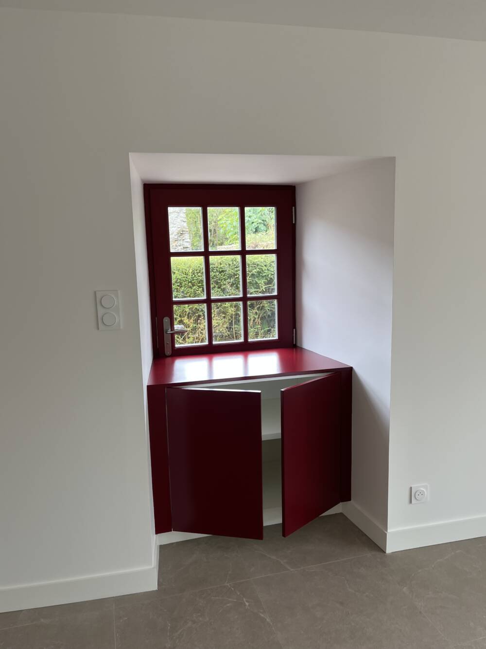 Modification des espaces intérieurs et création d’ouvertures sur le pignon pour offrir de nouvelles vues sur le jardin et profiter de l’apport de lumière par l’Ouest. Les façades donnant sur le manoir sont traitées avec un minimum d’interventions dans le respect de l’existant et en limitant les vue sur la cour.