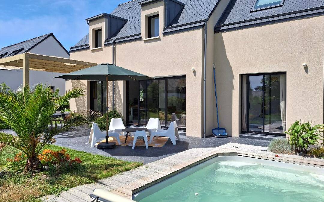 Le projet consiste en la création d’une maison neuve. La maison est sur 2 niveaux, les régles d’urbanisme impose une faible hauteur au faitage.