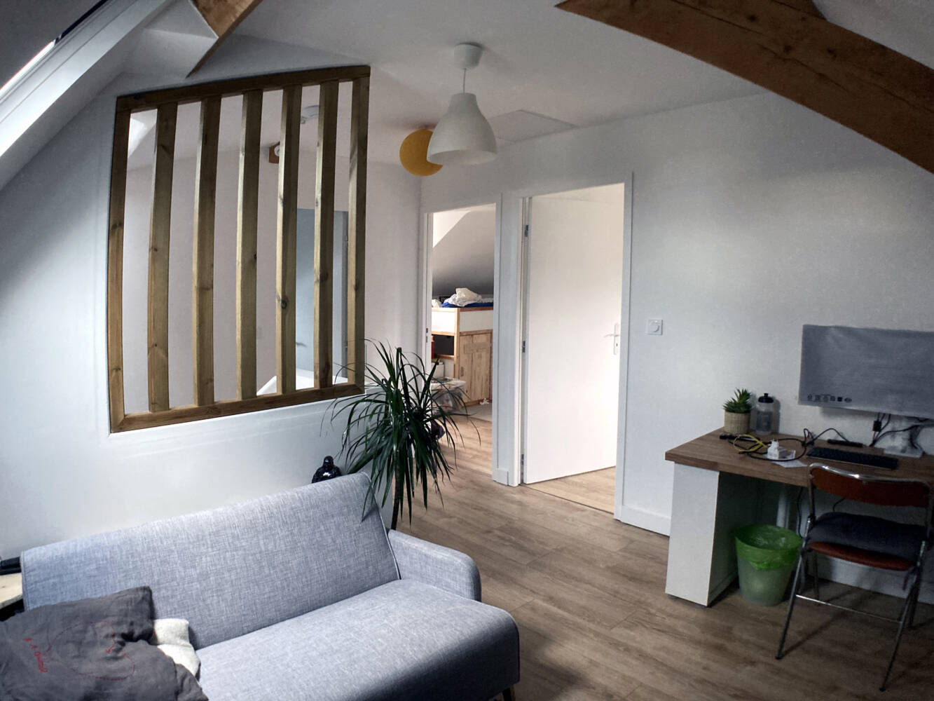 Le 1er étage, sous comble, a été entièrement refondé afin d’offrir deux grandes chambres, une salle de bain et un palier/bureau.